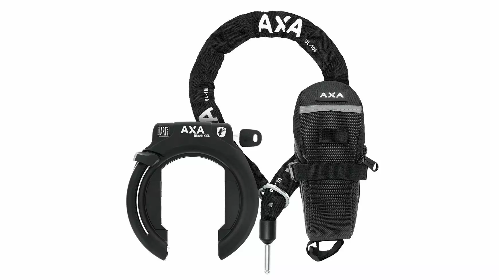Set bestehend aus: Rahmenschloss AXA Block XXL, NAZ Kette ULC100, Länge 100 cm, Durchmesser 5,5 cm Tasche